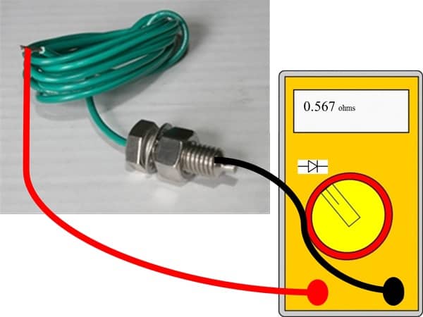 Solution: First, disconnect the bolt from the frame and socket. As with all diodes current only travels one way, so you can test the diode for an ohms reading one way, and open circuit, the other. The ohms reading for a good bolt should be around .567 ohms. If your reading comes in below .4 ohms or above .7 ohms, the bolt is faulty. If you can read current in both directions, or have an open circuit in both directions, the bolt is faulty. If you have a good bolt—reading good ohms in one direction only—you can move to checking for corrosion. At the site, where the bolt is attached to the frame, check for corrosion or rust. If present, remove the corrosion or rust, and ensure the area is clean of any oils or debris before re-installing the bolt.